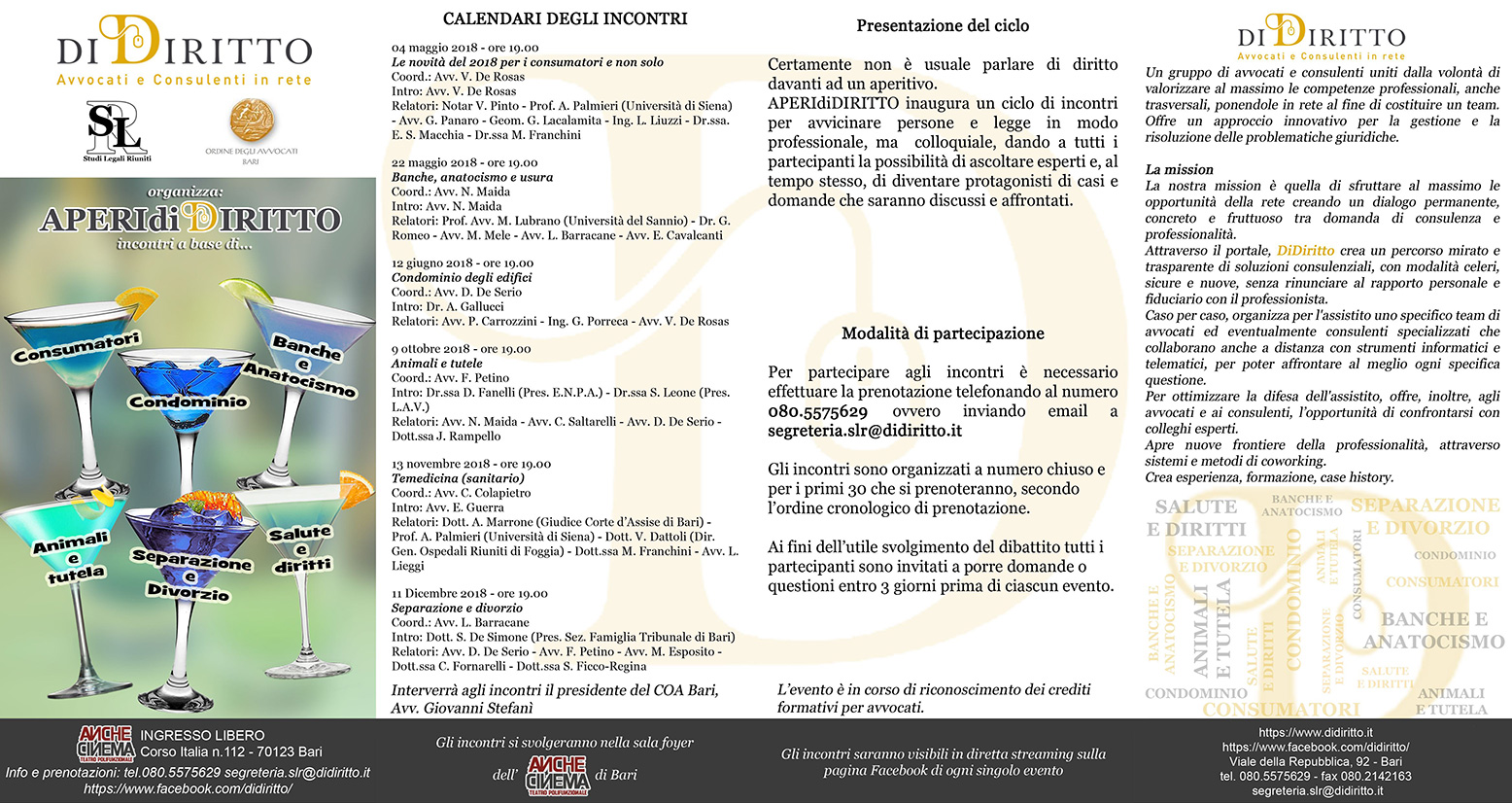 Info e prenotazioni: tel.080.5575629 segreteria.slr@didiritto.it