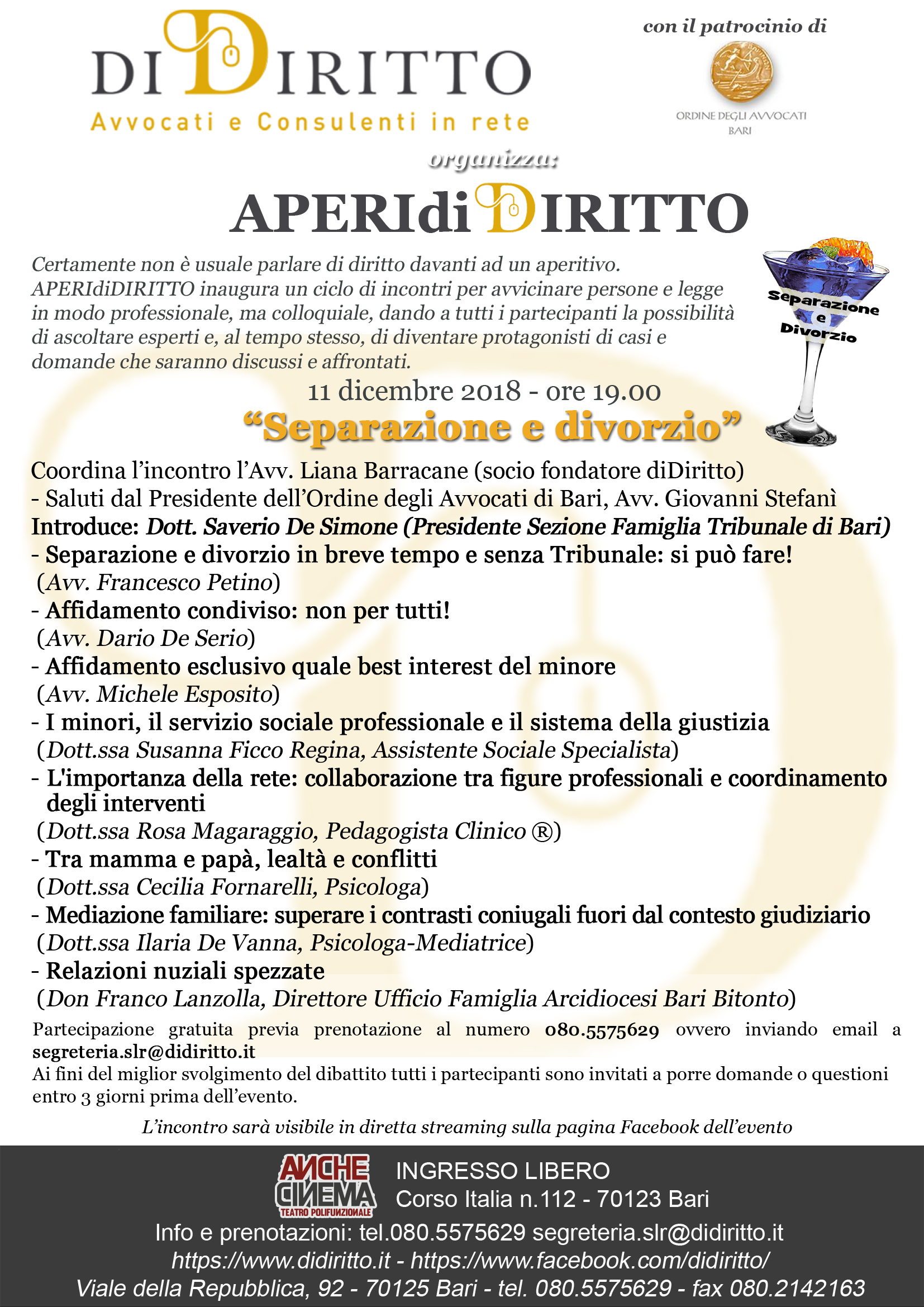 Separazione e divorzioCertamente non è usuale parlare di diritto davanti ad un aperitivo.