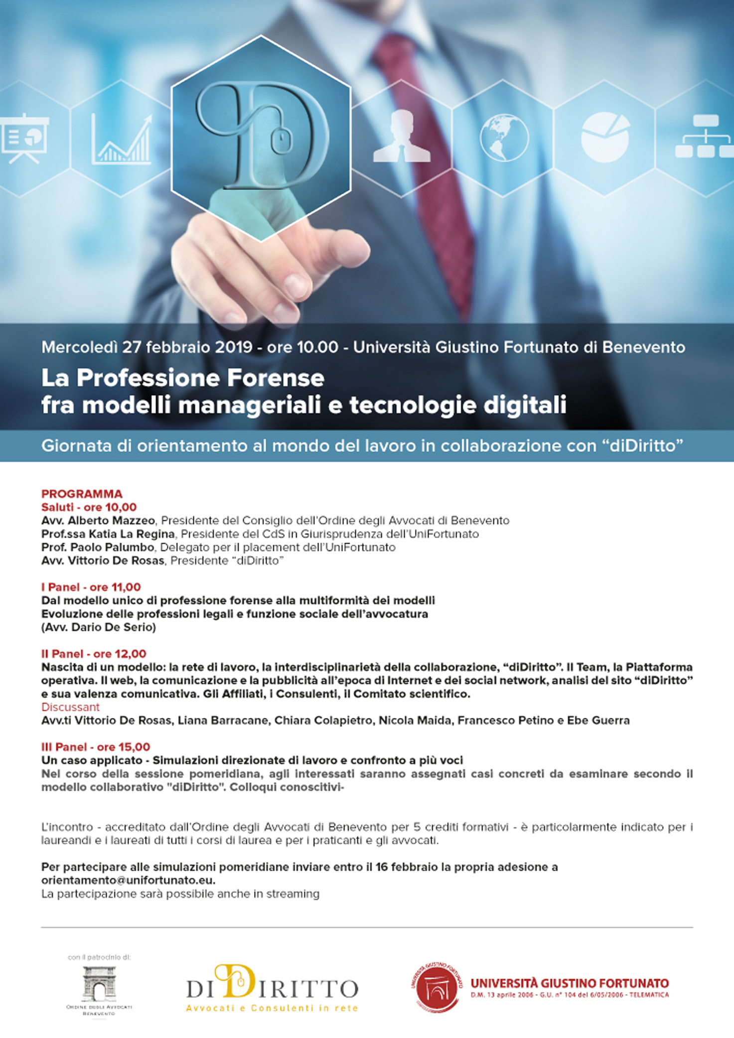 diDiritto in collaborazione con l’Università Giustino Fortunato di Benevento e con il patrocinio dell’Ordine degli Avvocati di Benevento, presenta: